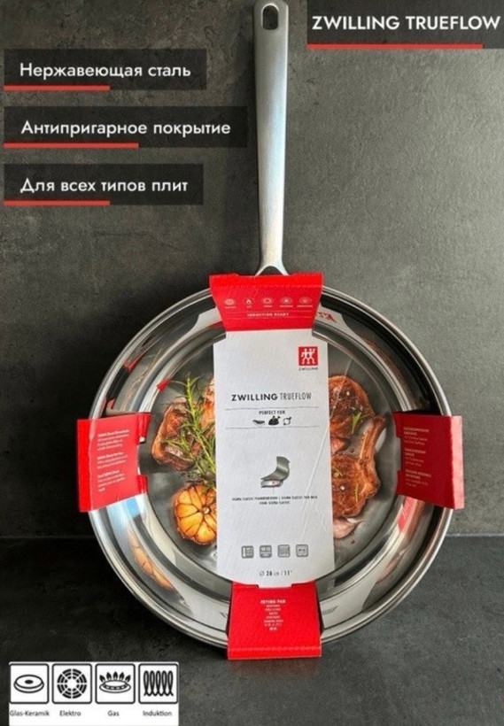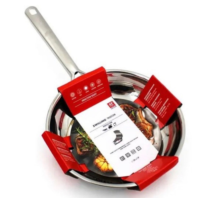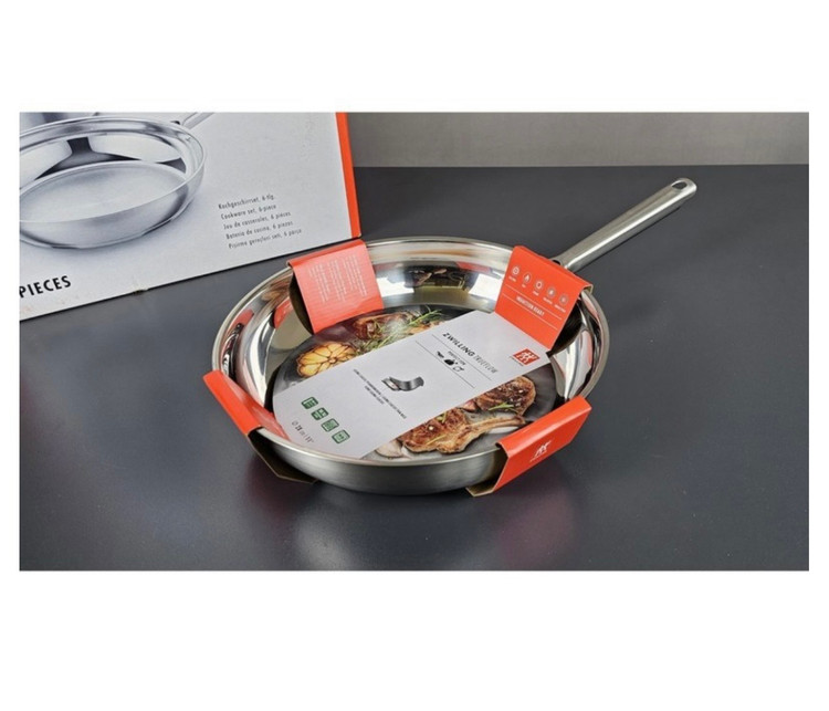 تابه استیل زولینگ Zwilling 24cm یک تابه ی حرفه ای از جنس استیل ضد زنگ است. قطر این محصول ۲۴ سانتی متر و عمق آن حدود ۶ سانتی متر است. همچنین کف آن صاف یک دست است که در کنار خاصیت پخش یکنواخت حرارات توسط جنس استیل، به پخت یک دست غذا کمک می کند. وزن این محصول حدود ۱.۵ کیلوگرم است و از طراحی و ساخت آلمانی برخوردار می باشد. جنس دسته ی این تابه فولاد ضد زنگ است و از محل اتصال بسیار محکمی جهت تحمل کردن وزن تابه برخوردار است.