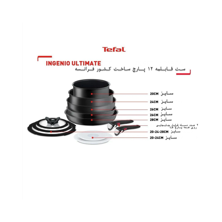 تعداد پارچ: ۱۲ پارچ (۵ پارچ قابلمه،۲ دسته قبلمه،۳عدد درب قابلمه،۲عدد درب پلاستیکی)