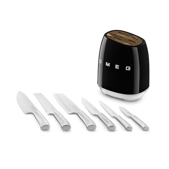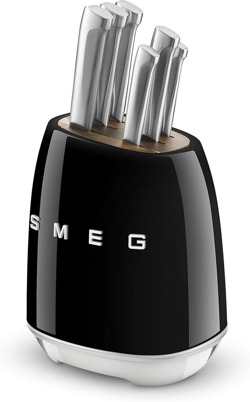 سرویس چاقو 7 پارچه اسمگ مدل SMEG KBSF01BL یک مجموعه زیبا و کارآمد برای آشپزخانه است. این سرویس شامل چاقوهای مختلفی برای برش انواع مواد غذایی است. تیغه های این چاقوها از فولاد ضد زنگ آلمانی ساخته شده اند. دسته های آنها نیز از استیل صیقلی و بادوام هستند.